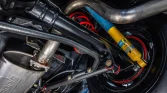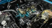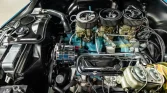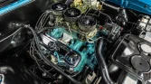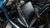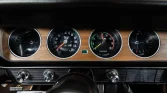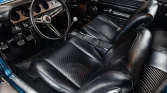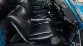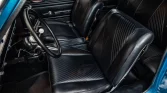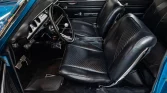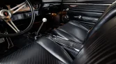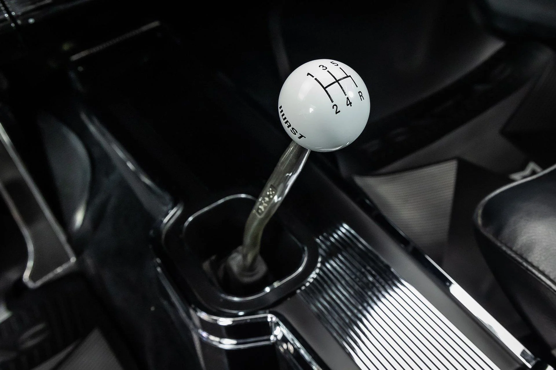 The interior is fully restored to stock specifications and finished in black vinyl. Up front are bucket seats along with a center console featuring a glove box and Hurst shifter. The dashboard includes full gauges with a tachometer and rev warning.