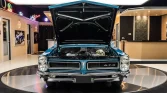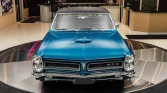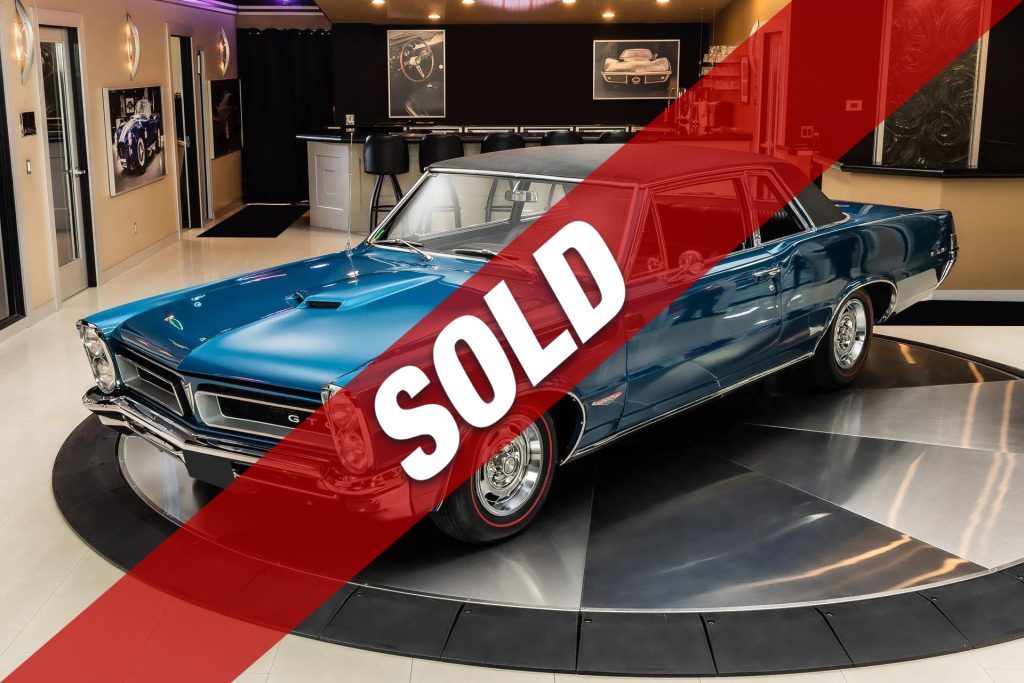 Check out this beautiful 1965 Pontiac GTO! This PHS-documented GTO has undergone a complete frame-off restoration with no expense spared. The exterior is finished in stunning Blue over Black with a Black vinyl top, accented by classic Pontiac Rally I wheels wrapped in Firestone tires.