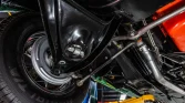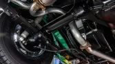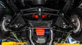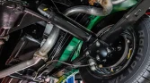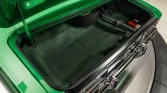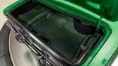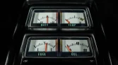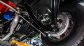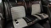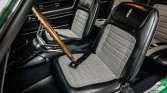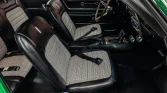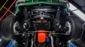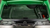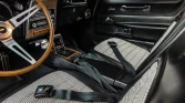 Inside, the cabin has been fully restored to stock specifications with black deluxe houndstooth upholstery, a black dashboard, and fresh carpeting. Between the front seats is a console with a staple shifter for the 3-speed, gauge pack, glove box, and lap belts. The dash features original gauges, heater controls, AM/FM radio, and a wood 3-spoke rally steering wheel. The trunk is finished with a full-size spare and jack.