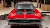 Check out this incredible 1970 Dodge Charger 500! This classic muscle car has undergone a full rotisserie restoration with no expense spared! The exterior is finished in striking Red with a Black Vinyl Top, and it rides on Magnum 500 Wheels wrapped in BF Goodrich Radial TA tires, perfectly complementing its aggressive stance.